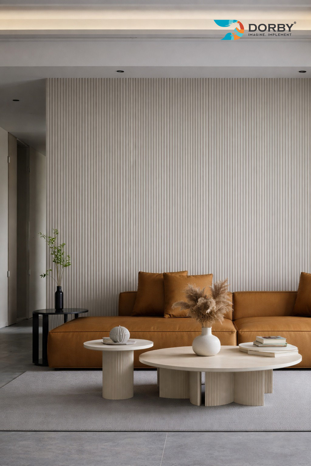 Beige Fluted Accent Wall with Contemporary Comfort