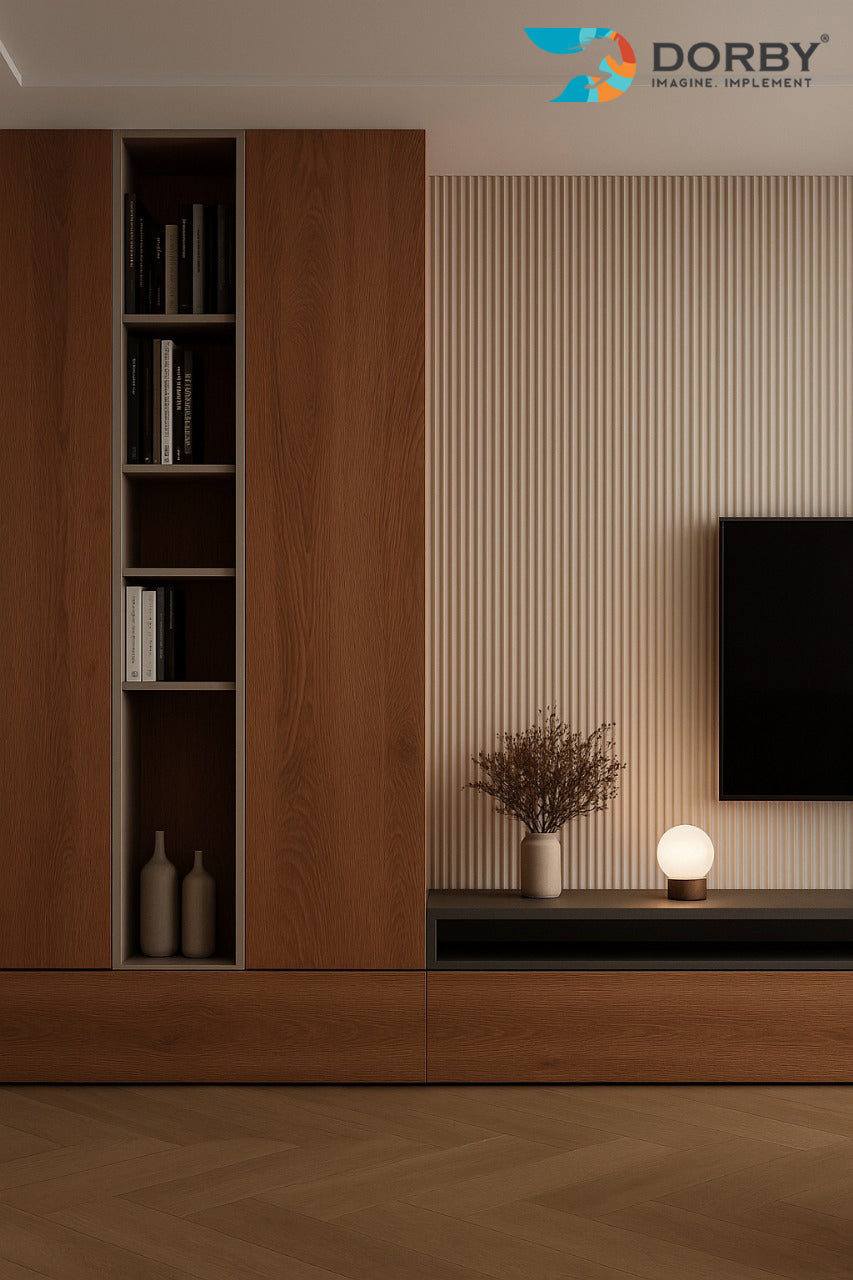 Textured Wall Panel Design - Grey Fluted Laminate Living Room Wall
