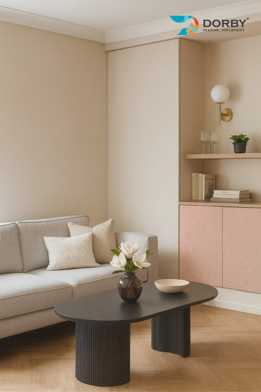Blush Pink and Beige Living Room