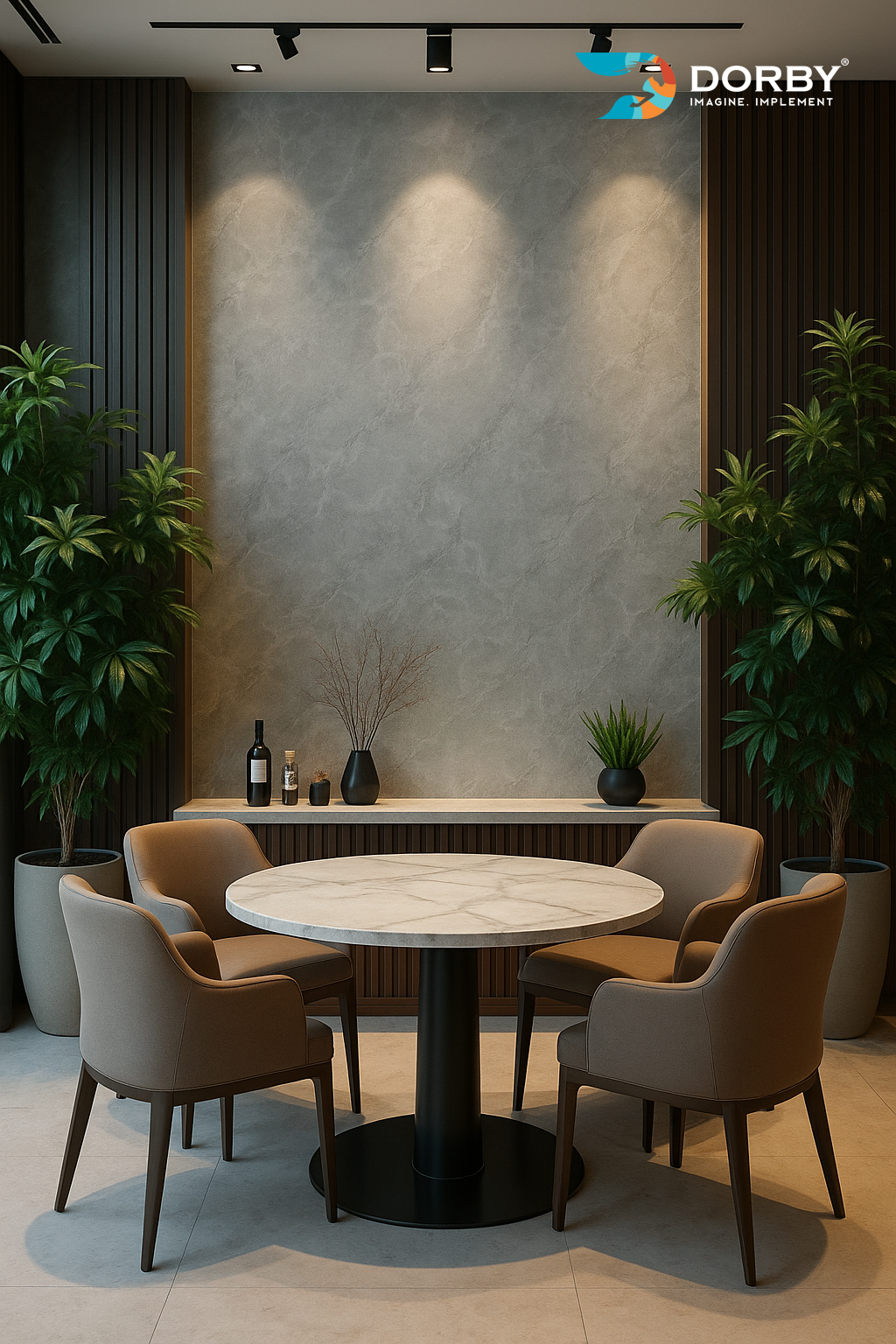 Modern Marble Dining Corner with Grey Wall Finish