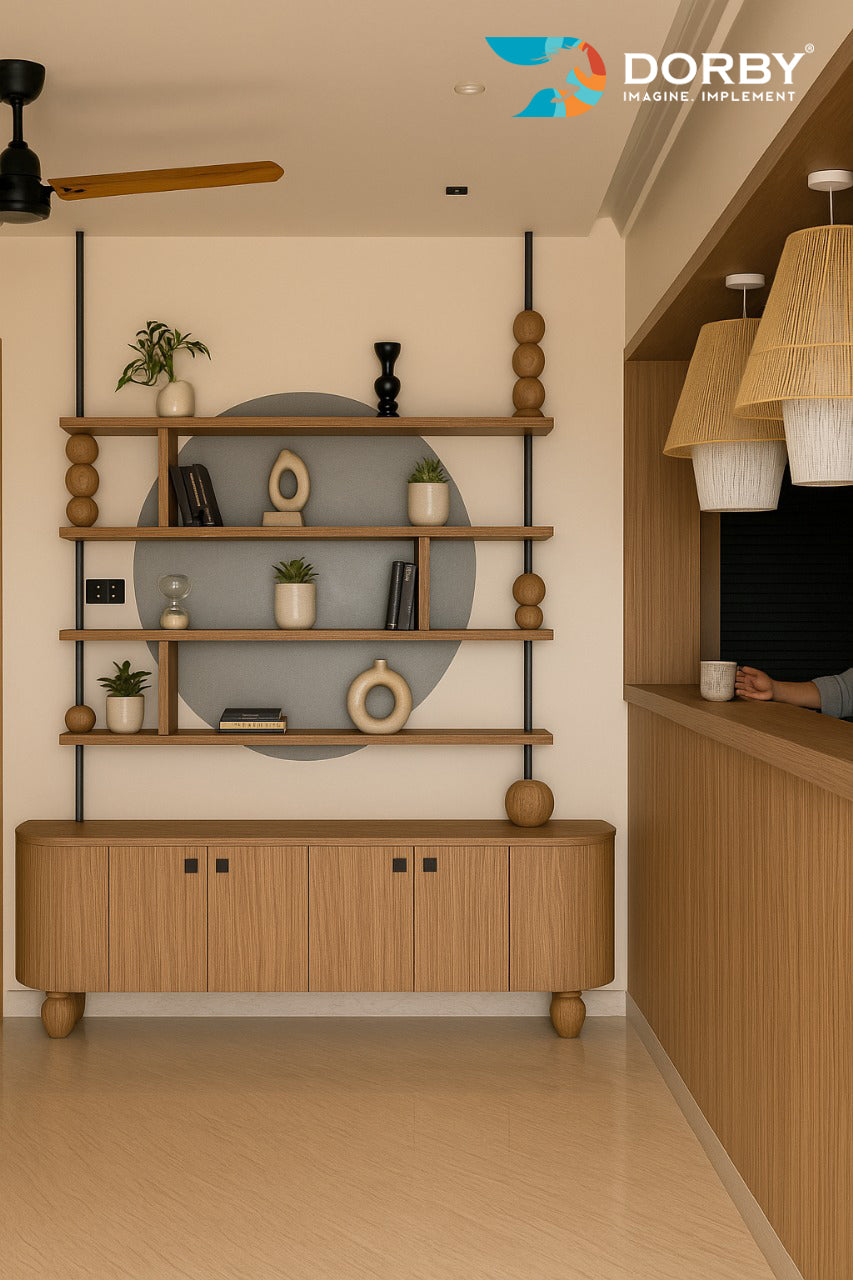 Contemporary Living Space with Geometric Wood Accents