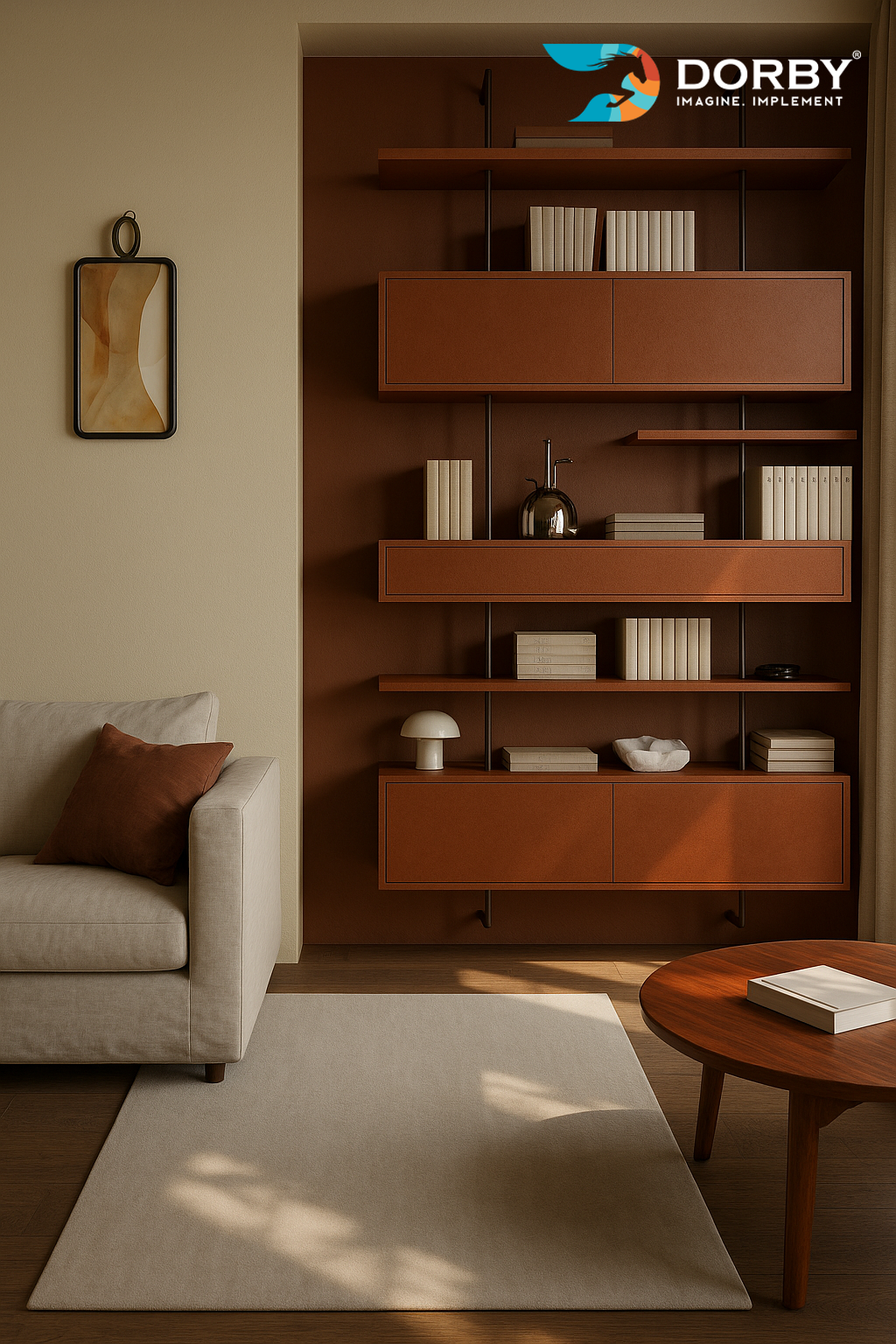 Warm Wall Shelves with Cozy Minimal Living