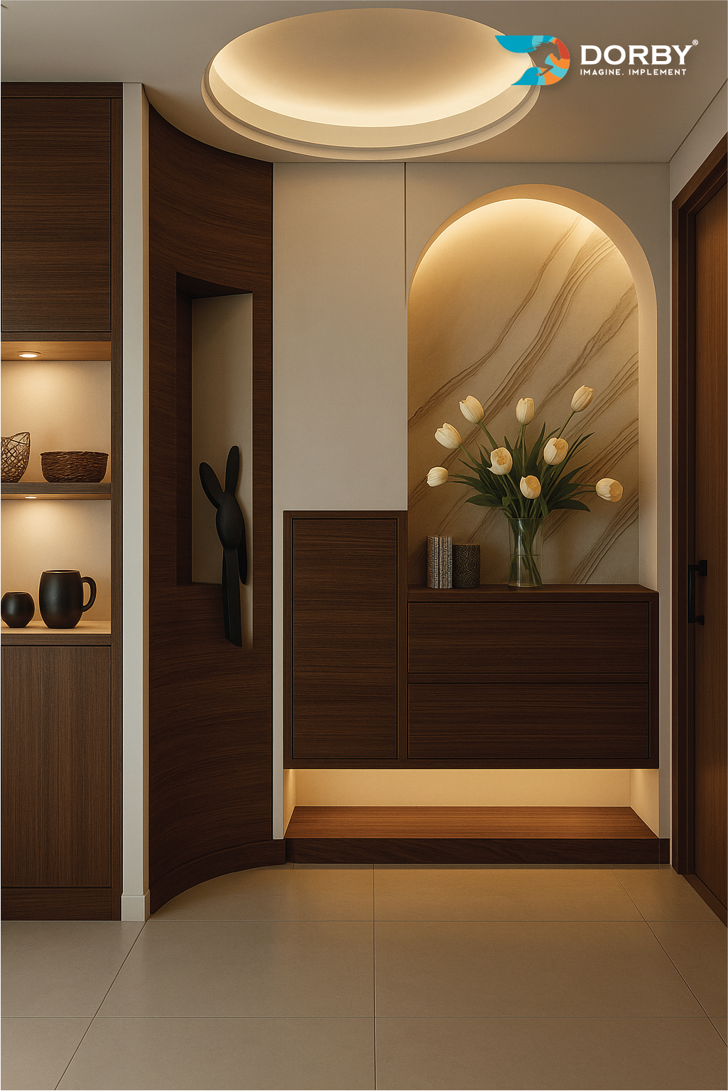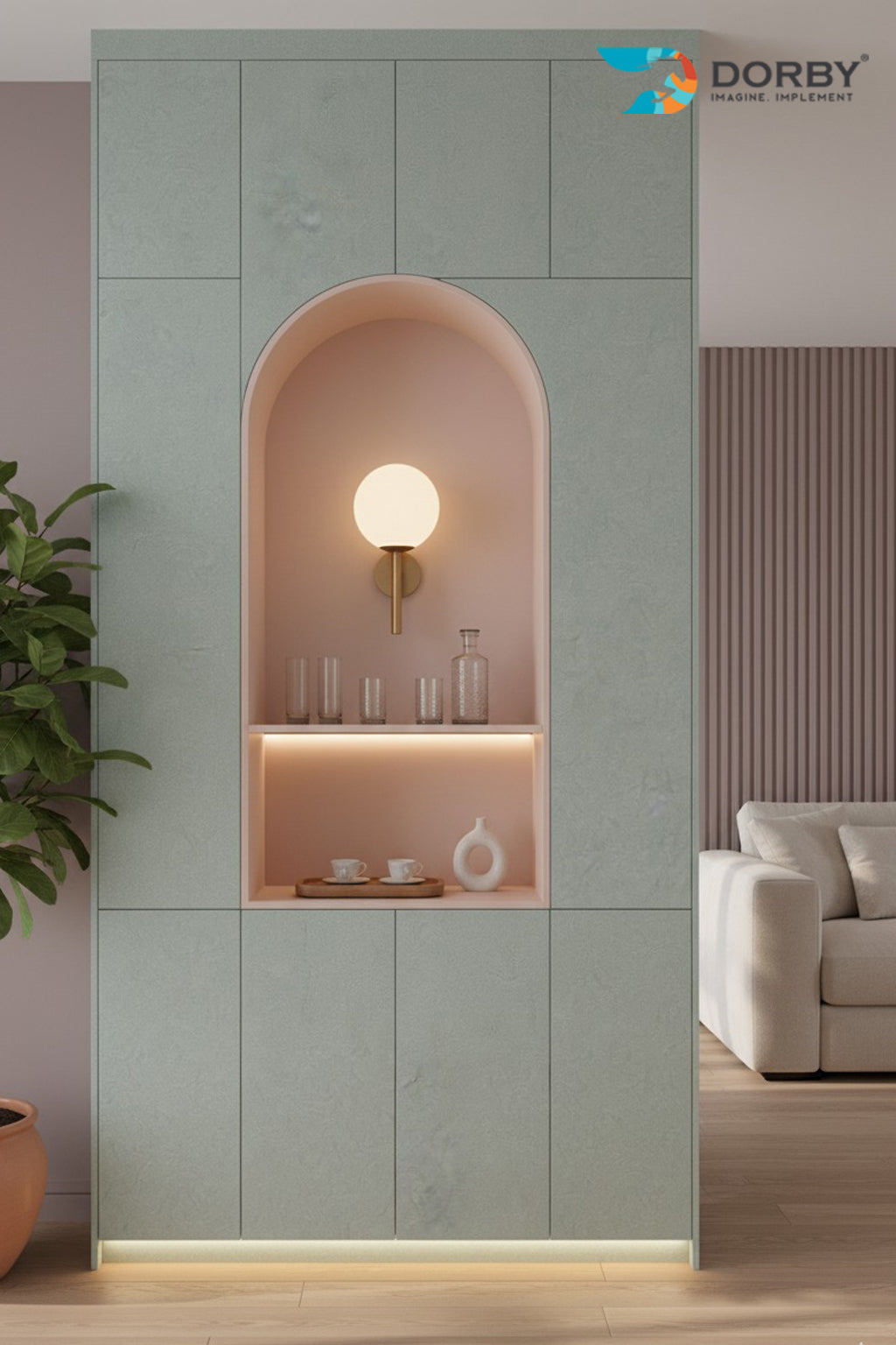 Modern Living Room with Elegant Arch Niche Design