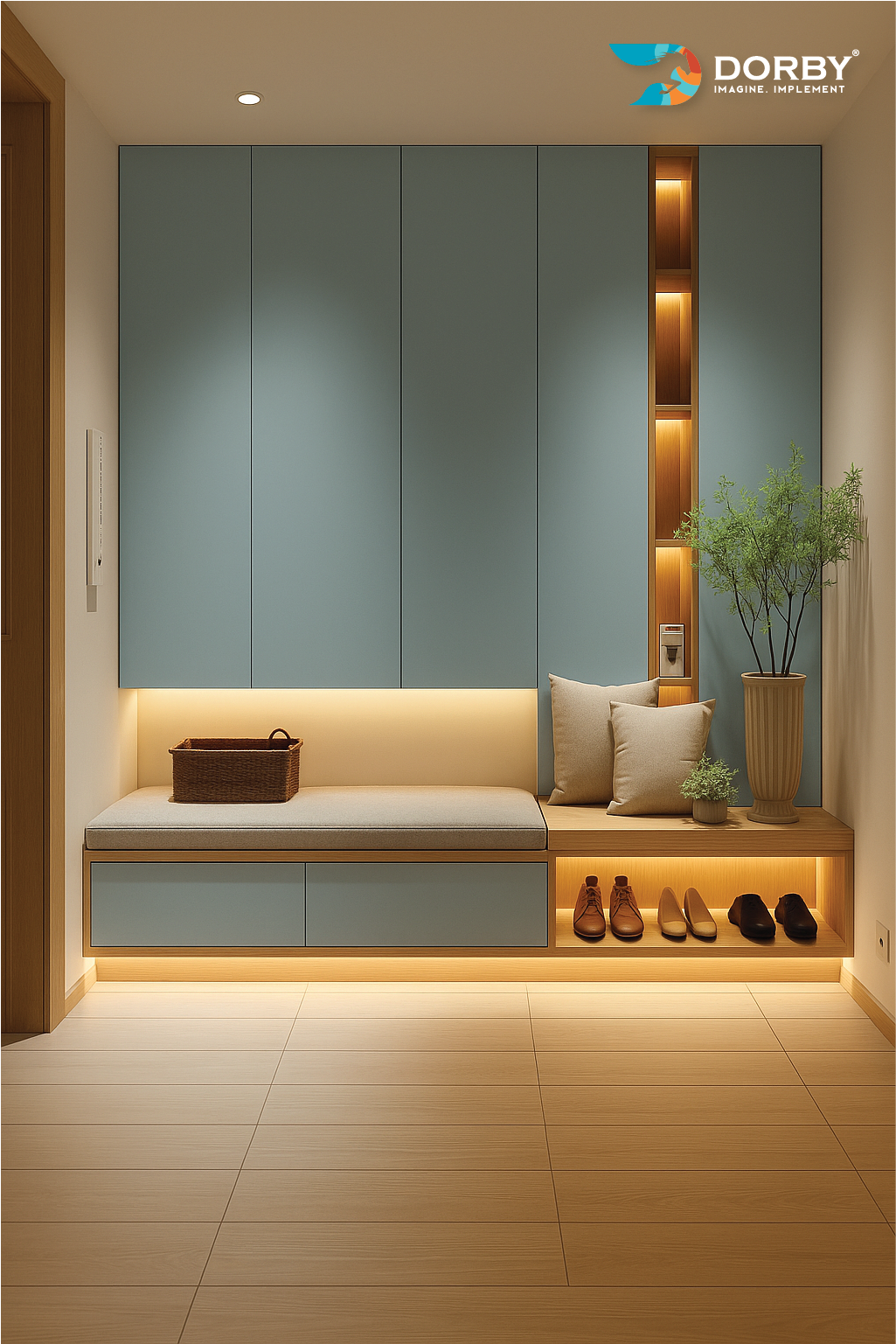 Beige Wood Storage Unit Design - Modern Entryway Cabinet Interior