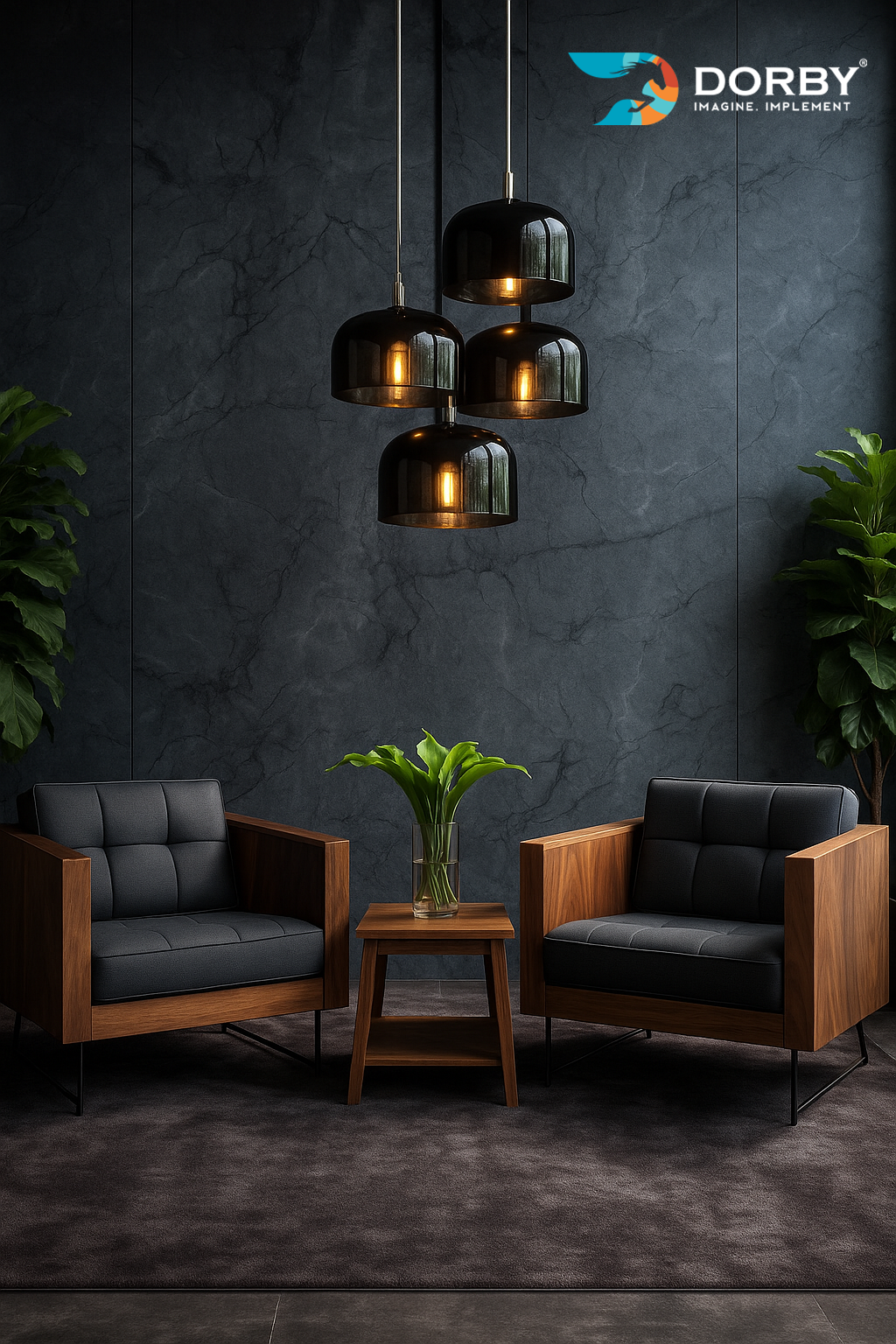 Modern Living Space with Wood & Charcoal Accents